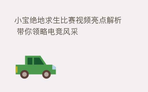 小宝绝地求生比赛视频亮点解析 带你领略电竞风采