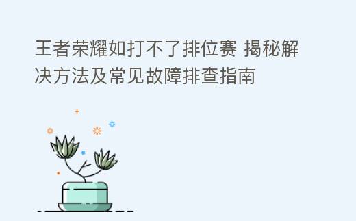 王者荣耀如打不了排位赛 揭秘解决方法及常见故障排查指南
