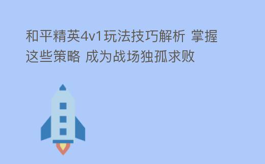 在《和平精英》4v1玩法中,掌握以上技巧,可以帮助你在战场上脱颖而出,成为真正的制胜者。不断练习和总结经验,相信你会在游戏中取得更好的成绩。