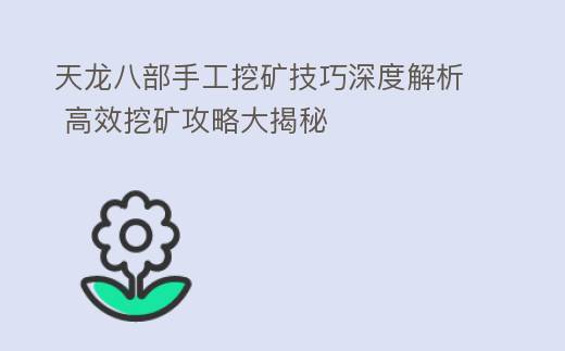 摘要:天龙八部手工挖矿技巧:轻松提升资源获取效率在《天龙八部》这款经典武侠手游中,手工挖矿是玩家获取资源的重要途径之一。掌握一些手工挖矿的技巧,不仅能让你在游戏中如鱼得水,还能让你在资源获取上领先一步。本文将为你详细介绍天龙八部手工挖矿的技巧,助你轻松提升资源获取效率。一、选择合适的挖矿地点在《天龙八部》中,不同的挖矿地点资源丰富程度不同。地图上的紫色区域资源最为丰富,其次是蓝色和绿色区域。玩家在选择挖,天龙八部手工挖矿技巧深度解析 高效挖矿攻略大揭秘