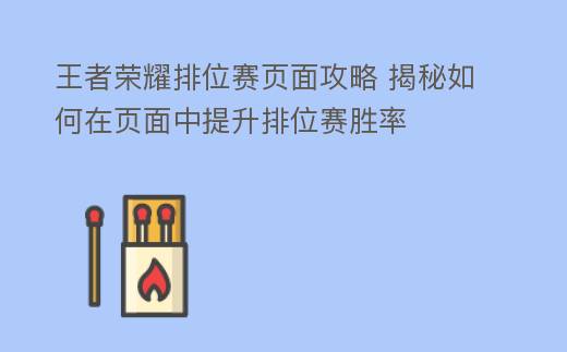 王者荣耀排位赛页面攻略 揭秘如何在页面中提升排位赛胜率