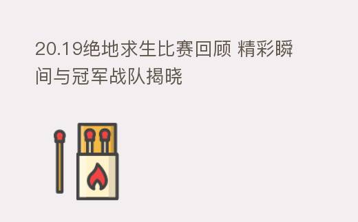 20.19绝地求生比赛回顾 精彩瞬间与冠军战队揭晓