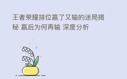 王者荣耀排位赢了又输的迷局揭秘 赢后为何再输 深度分析