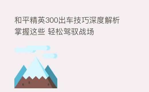 和平精英300出车技巧深度解析 掌握这些 轻松驾驭战场