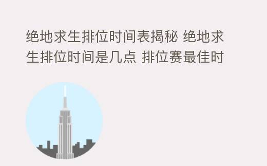 前言:在《绝地求生》这款全球风靡的竞技游戏中,排位赛是许多玩家追求更高段位、证明自己实力的舞台。那么,绝地求生排位时间是几点呢?本文将为你详细解析排位赛的时间安排,助你把握最佳竞技时机。
