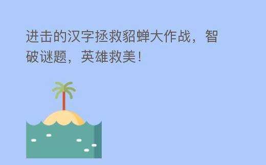 “拯救貂蝉”是《进击的汉字》中一个充满挑战和趣味的关卡,需要玩家运用智慧和汉字知识,才能成功解救貂蝉,希望以上攻略能够帮助玩家顺利通关,体验游戏的乐趣,感受中华文化的魅力。