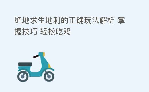 相关搜索词:绝地求生地刺放置技巧、绝地求生地刺升级方法、绝地求生地刺战术运用、绝地求生地刺应对策略