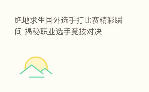 绝地求生国外选手打比赛为我们呈现了一场场精彩纷呈的竞技盛宴。他们在比赛中展现出的高超技艺和心理素质,为我们树立了榜样。通过学习他们的经验和策略,我们相信我国选手在未来的比赛中将取得更加优异的成绩。