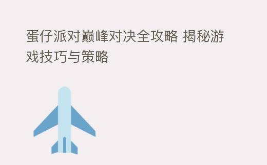 通过以上六个方面的攻略,相信你已经对《蛋仔派对》巅峰对决有了更深入的了解。在游戏中,要不断练习,积累经验,才能在巅峰对决中脱颖而出。祝你在游戏中取得优异成绩!
