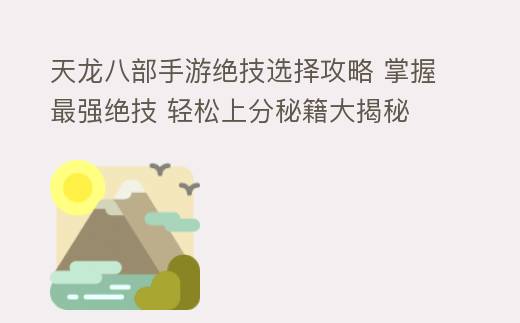 前言:在《天龙八部手游》这款充满江湖气息的手机游戏中,绝技的选择对于战斗的胜负起着至关重要的作用。如何在这纷繁复杂的绝技中挑选出最适合你的那一款,成为许多玩家头疼的问题。本文将为你详细解析天龙八部手游绝技选择攻略,助你打造属于自己的绝世江湖传奇。