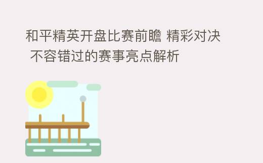 和平精英开盘比赛前瞻 精彩对决 不容错过的赛事亮点解析
