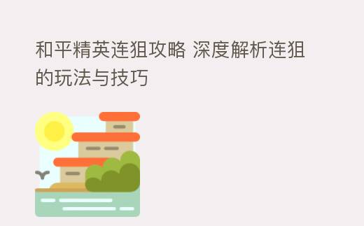 和平精英连狙攻略 深度解析连狙的玩法与技巧
