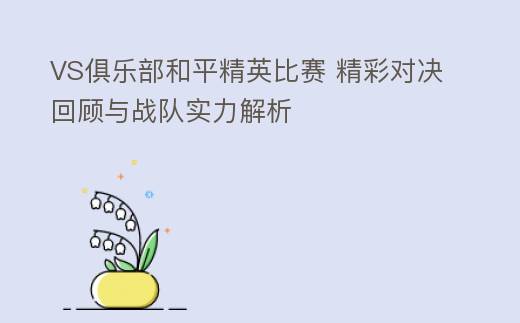VS俱乐部和平精英比赛 精彩对决回顾与战队实力解析