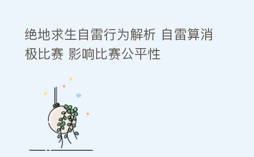 在《绝地求生》这款全球知名的竞技游戏中,自雷行为一直被视为一种消极比赛的表现。这种行为不仅破坏了游戏的公平性,还影响了其他玩家的游戏体验。本文将深入探讨自雷算消极比赛的原因、影响以及应对策略。