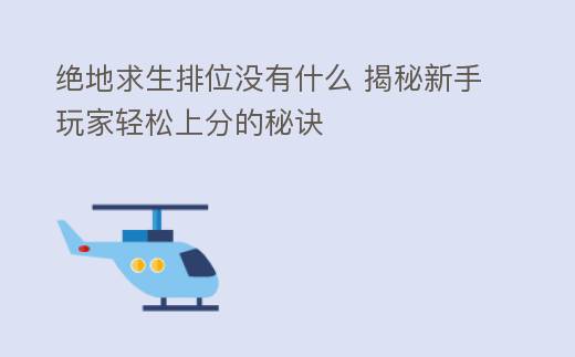 绝地求生排位没有什么 揭秘新手玩家轻松上分的秘诀