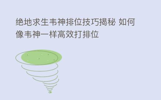 通过学习韦神的定位与观察、枪法与射击技巧、战术选择与团队配合以及心态调整与心理素质,相信你能够在《绝地求生》排位赛中取得更好的成绩。以下是一些与本文相关的百度搜索关键词: