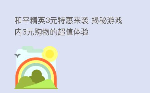 前言:在《和平精英》这款火爆的射击游戏中,3元成为了许多玩家关注的焦点。这3元究竟代表着何?是游戏内购的诱惑,还是隐藏的福利?本文将深入解析和平精英3元的奥秘,帮助玩家们更好地领会并利用这一游戏元素。