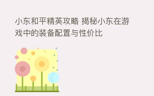 小东和平精英攻略 揭秘小东在游戏中的装备配置与性价比