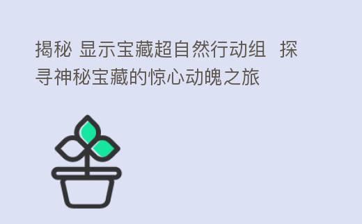 前言:在虚拟全球中,探寻神秘宝藏的冒险一直是玩家们津津乐道的话题。而“显示宝藏超天然行动组”正是这样一款充满神秘色彩的冒险游戏。它将玩家带入一个充满未知的全球,通过团队协作,揭开隐藏在深处的宝藏之谜。接下来,就让我们一起走进这个神秘的全球,探索“显示宝藏超天然行动组”的奥秘。