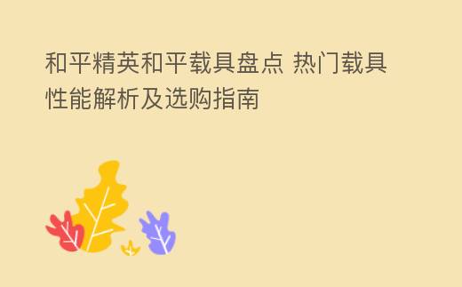 和平精英和平载具盘点 热门载具性能解析及选购指南