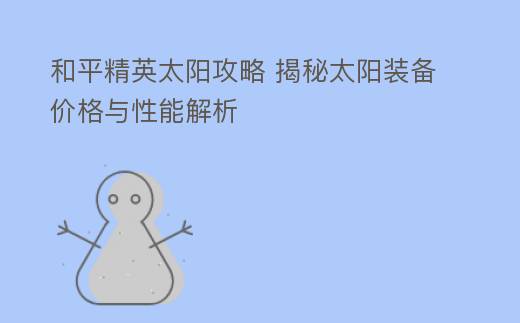和平精英太阳攻略 揭秘太阳装备价格与性能解析