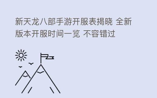 前言:随着手机游戏的蓬勃进步,越来越多的玩家开始将目光投向了这款经典武侠手游——《新天龙八部》。作为一款深受玩家喜爱的作品,新天龙八部手游在开服方面也颇具特色。本文将为您详细介绍新天龙八部手游的开服表,帮助您轻松掌握游戏动态,畅游江湖。