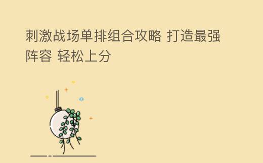 刺激战场单排组合攻略 打造最强阵容 轻松上分
