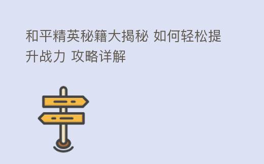 和平精英秘籍大揭秘 如何轻松提升战力 攻略详解