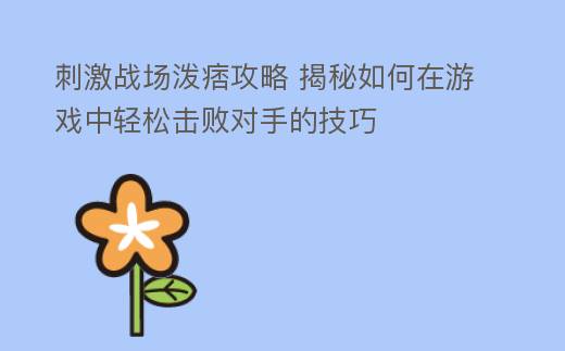 刺激战场泼痞攻略 揭秘如何在游戏中轻松击败对手的技巧