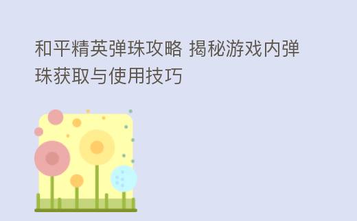 和平精英弹珠攻略 揭秘游戏内弹珠获取与使用技巧