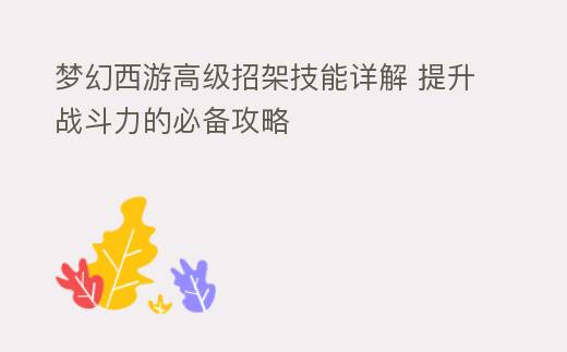 文章标题:梦幻西游高品质招架攻略:提升战斗力的关键技巧