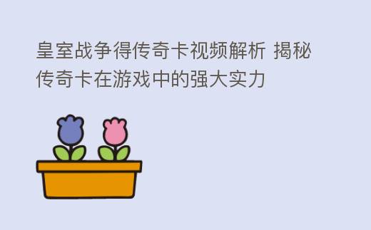 在《皇室战争》这款全球知名的卡牌对战游戏中,传奇卡以其强大的实力和特殊的技能,成为了许多玩家梦寐以求的收藏品。传奇卡视频攻略,旨在帮助玩家深入了解这些传奇卡的使用技巧,从而在战场上所向披靡。本文将围绕传奇卡视频这一主题,详细解析其玩法、解决办法以及实战技巧。