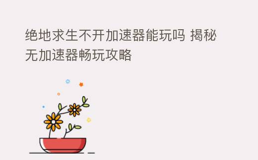 摘要:绝地求生不开加速器能玩吗?深度解析与解决方案随着《绝地求生》这款游戏的火爆,越来越多的玩家加入了这场生存竞技的狂欢。不少玩家在游戏中遇到了网络延迟的难题,纷纷询问“绝地求生不开加速器能玩吗?”本文将深入探讨这一难题,并提供相应的解决方案。一、不开加速器能,绝地求生不开加速器能玩吗 揭秘无加速器畅玩攻略