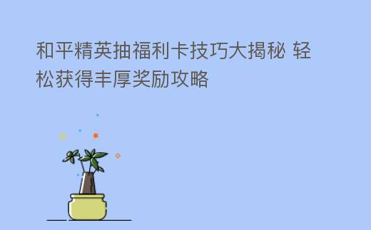 前言:在《和平精英》这款热门射击游戏中,福利卡抽奖是许多玩家喜爱的活动之一。通过巧妙运用一些技巧,玩家可以大大提高抽到稀有福利卡的概率,从而获得更多游戏资源和道具。本文将为您详细介绍一些实用的抽福利卡技巧,帮助您轻松解锁丰厚奖励。
